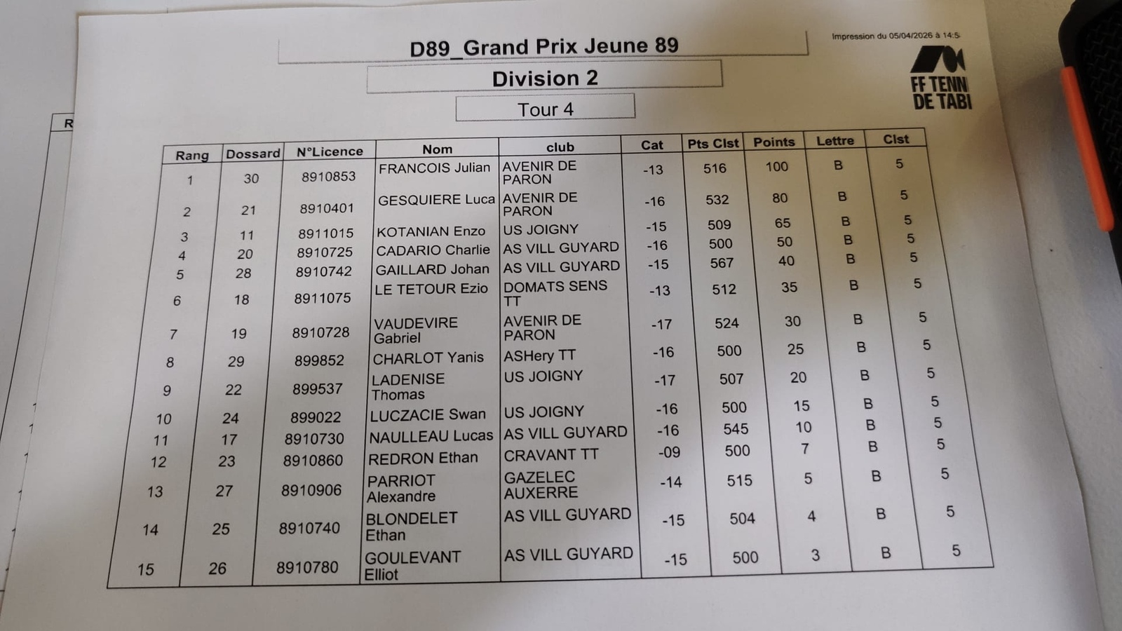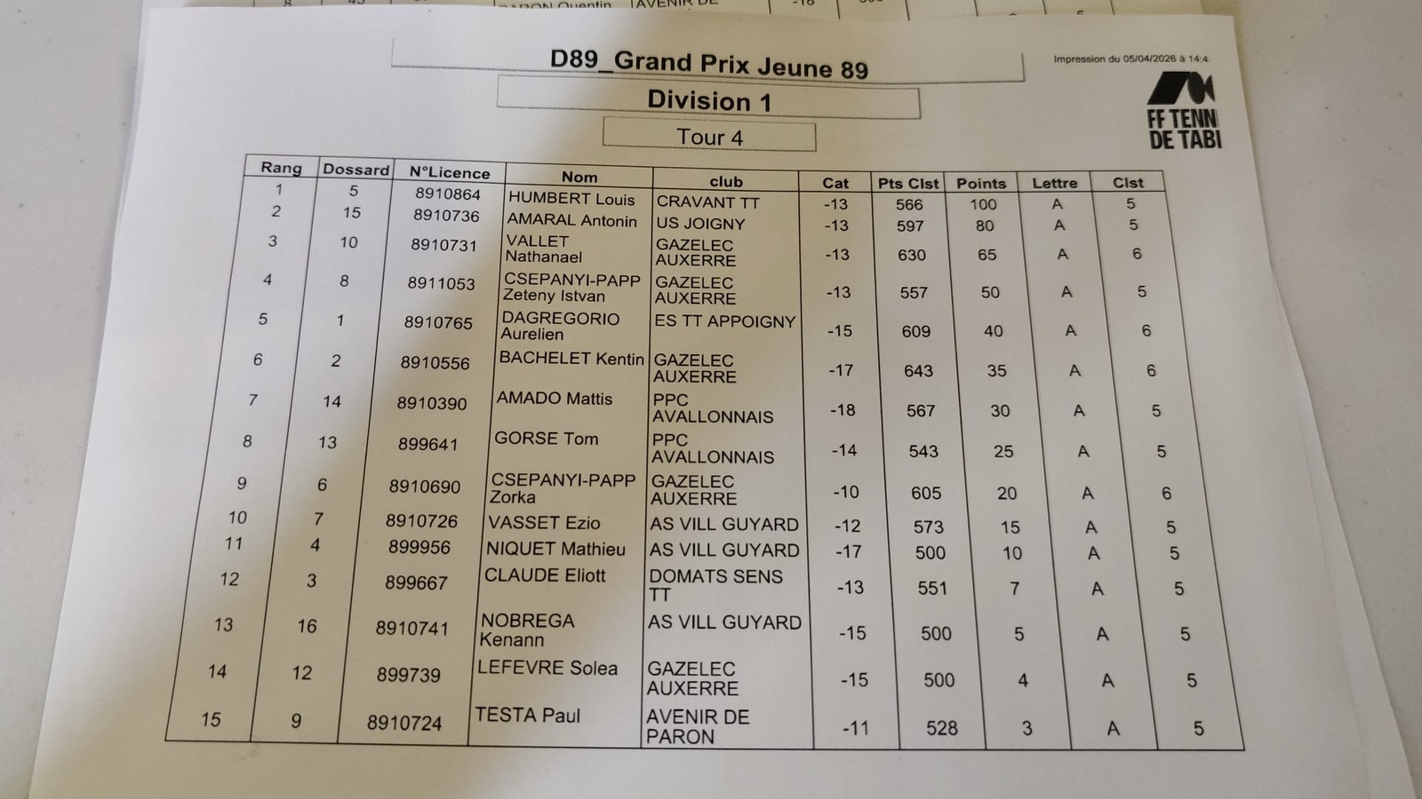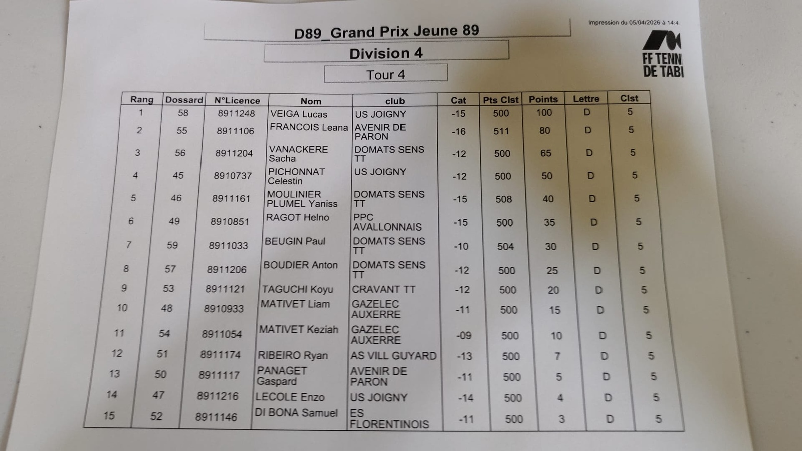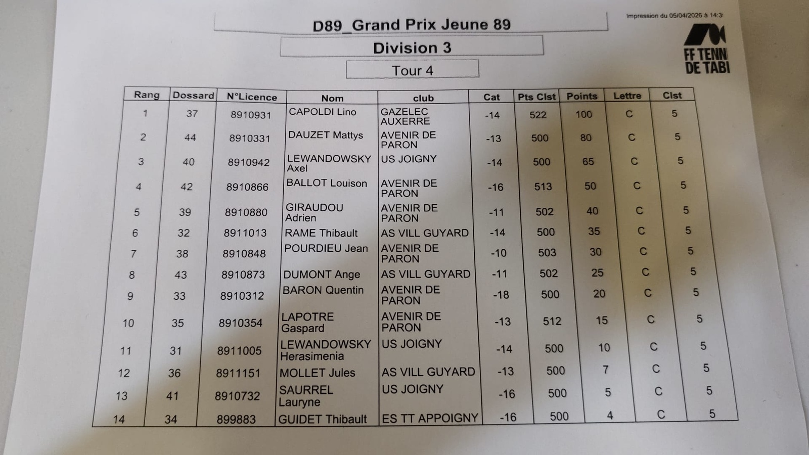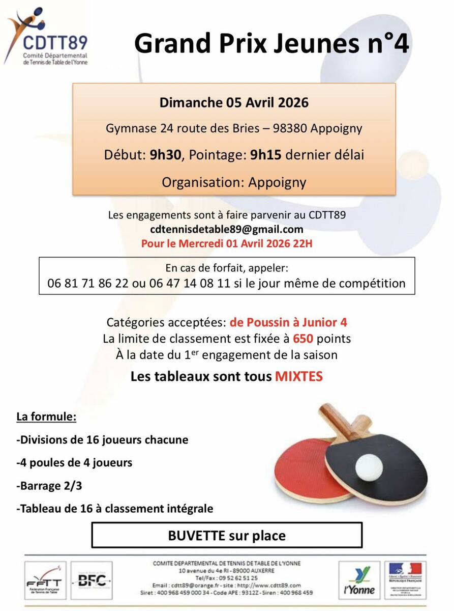 Merci à ESTT Appoigny pour l’organisation et aux différents bénévoles des clubs ainsi qu’aux JA.
